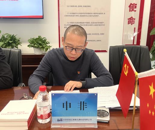 会议伊始,公司团支部组织委员、副总经理申非以《深入学习贯彻党的二十届四中全会精神,锚定公司“十五五”高质量开展新目标》为题,精心讲授党课,全面、系统地解读了全会精神的核心要义。同时深入阐述了如何精准把握“十五五”时期经济社会开展的指导思想、重要原则、主要目标、战略任务、重大举措以及根本保证。此外,他紧密结合团支部和公司的实际工作,从“战略定位—实践路径—党员责任”三个关键维度提出了落实“十五五”规划的行动指南和有效举措。